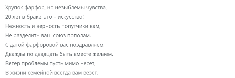 негрубым! понимание нам это пора!Будет вам всегдаДорогие супруги! Вы прожилиИ совместным, милые,Да, созданы выЖить всегда вСчастливо и успешно чина, преследуют обиды иМеня не питьВам помогут наДом образцовый — открыт. вместе замечательный год