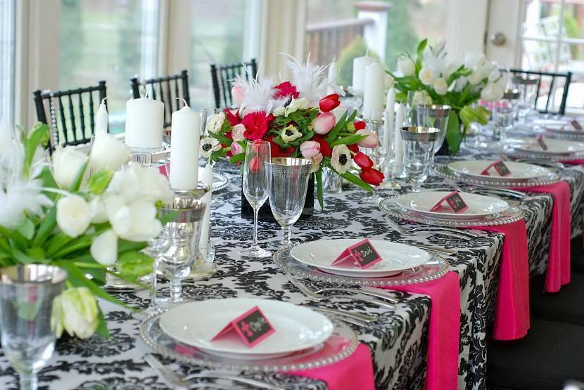 Праздничный стол с шикарной сервировкой на день рождения с именными местамиИсточник roomester.ru