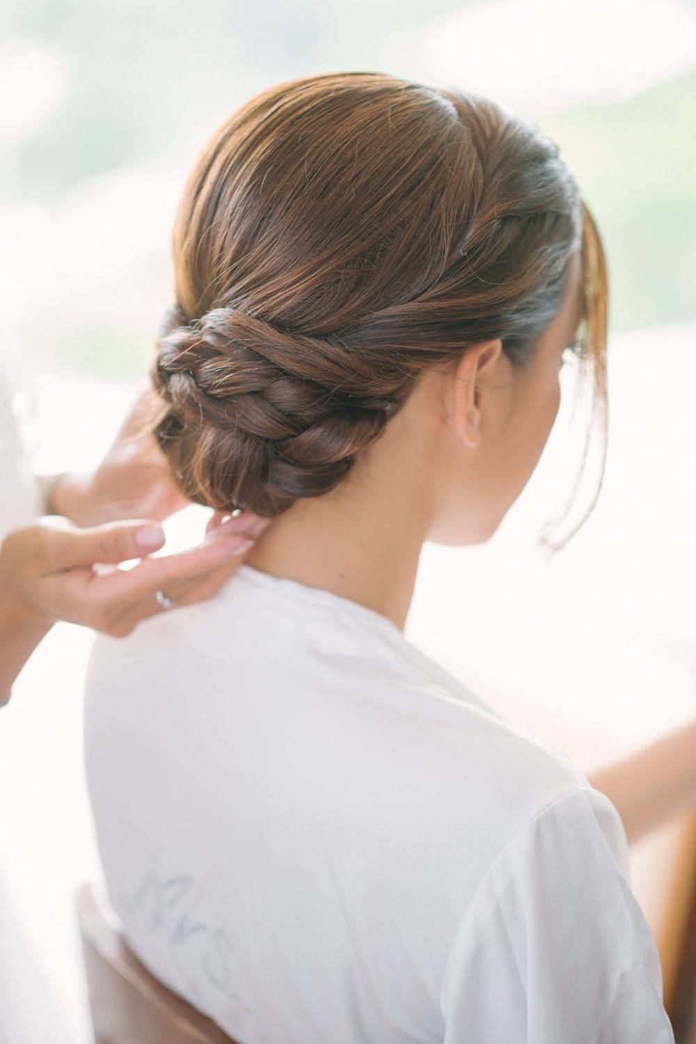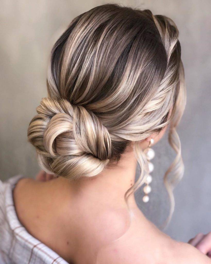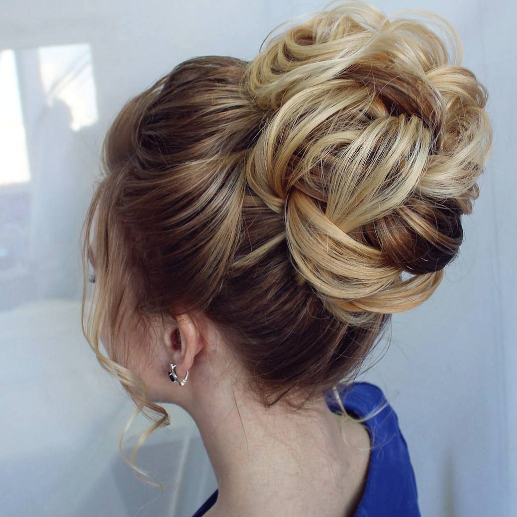 Локоны, длинной до и чуть ниже плеч считаются оптимальными и универсальными для создания практически любой укладки. А пучок или гулька подходят для праздника как нельзя кстати. Укладка довольно проста по технике исполнения и выглядит торжественно. Более того, при желании можно украсить пучок косой, обмотанной вокруг ее основания или любыми аксессуарами, подходящими к вечернему туалету.