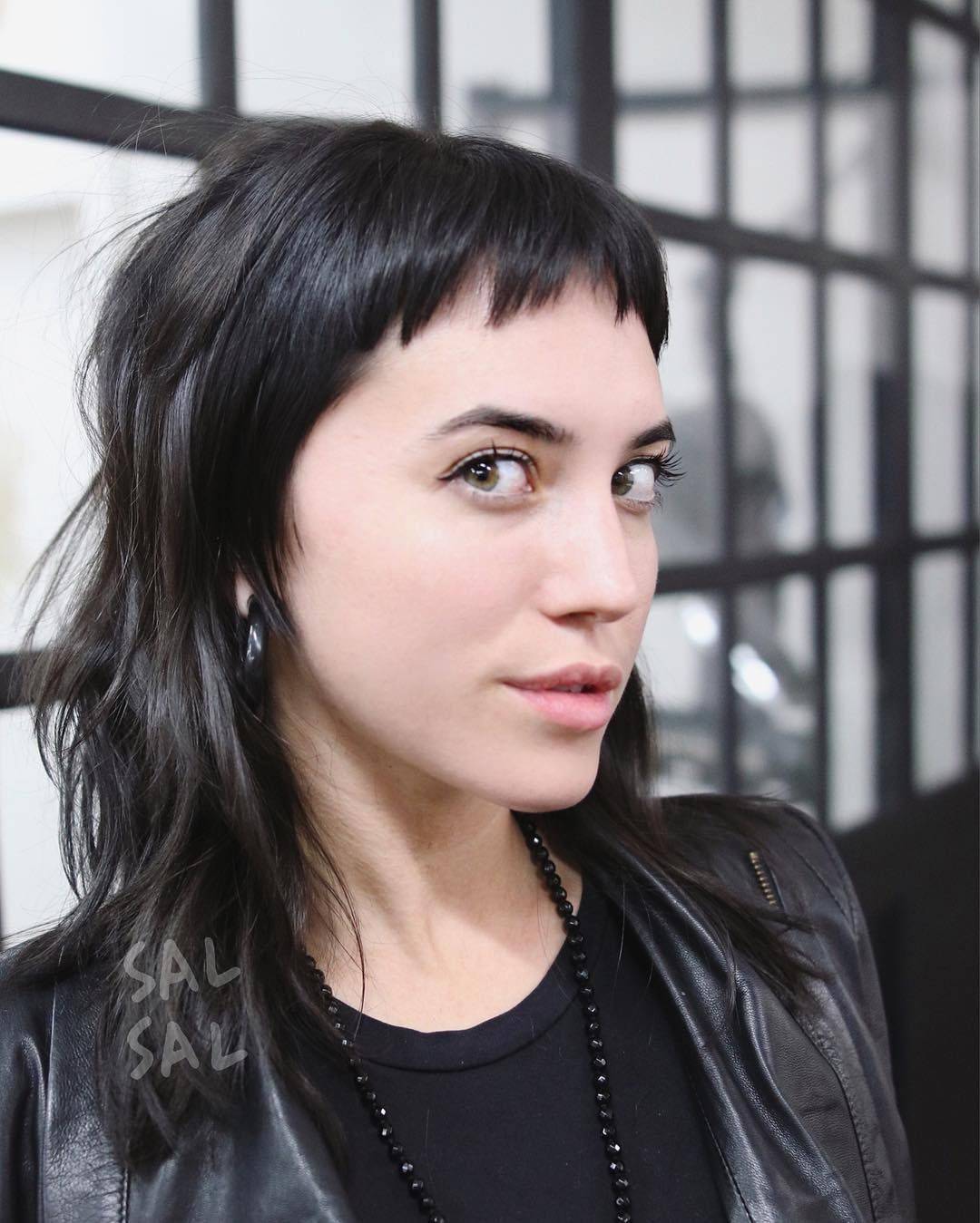 Отдельного внимания заслуживают длинные волосы с короткой челкой. Такая стрижка максимально открывает лицо, поэтому выбирать такой вариант нужно лишь в том случае, если вы уверены в своей внешности. Форма челки может быть прямой, косой, рваной, асимметричной. В итоге у вас получается невероятно милых и хрупкий образ.