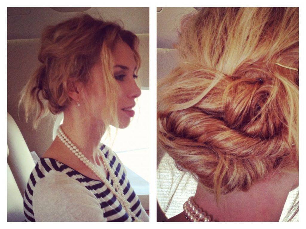 после этого на затылке, не важно высоко либо внизу, завязывается хвост, резинку лучше подобрать под цвет волос, чтобы ее не было сильно заметно. Из хвоста делается пучок, который фиксируется невидимками либо шпильками, при этом будет даже лучше, если пучок получится немного небрежный