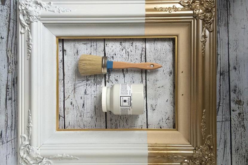 Всю деревянную поверхность рамки загрунтуйте в несколько слоев, с просушкой каждого, белой акриловой краской.