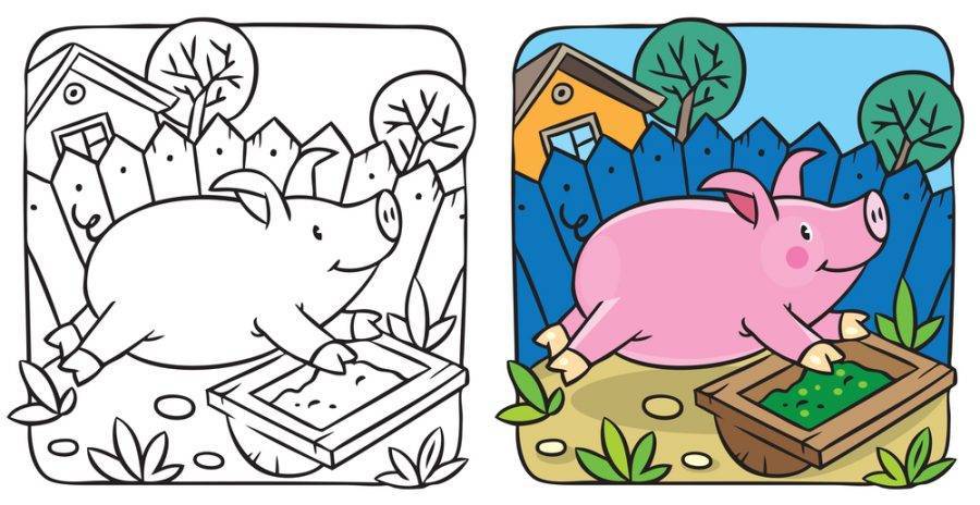 Существует заблуждение, что поросята — грязнули и обожают по-долгу возиться в лужах. На самом деле Свинья — достаточно чистоплотное животное. Особенно это касается домашних свинок, которых малыш может нарисовать самостоятельно или разукрасить уже готовые контурные шаблоны.