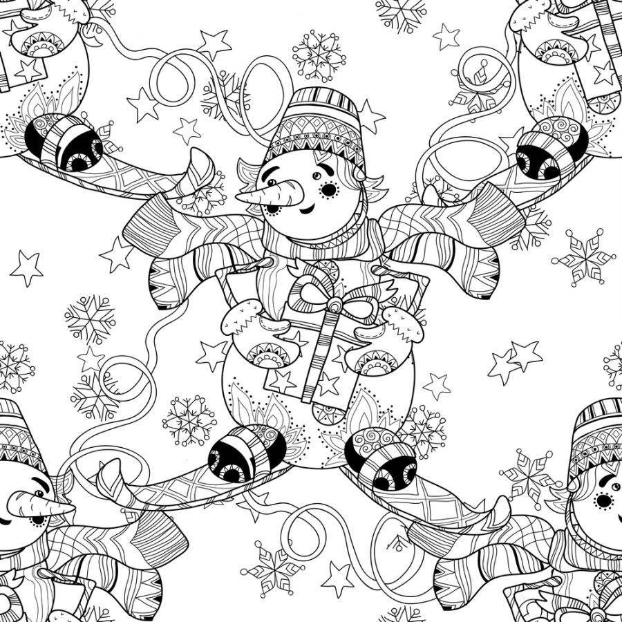 - Раскраска снеговик и подарки