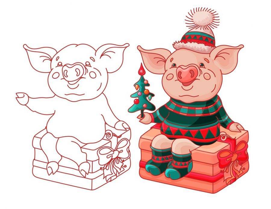 При помощи нашей новой подборки раскрасок с новогодними поросятами можно скачать любую понравившуюся картинку, сохранить к себе на компьютер и распечатать, воспользовавшись принтером.