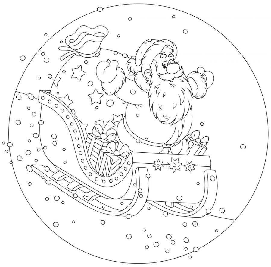 - Раскраска Дед Мороз несет подарки детям