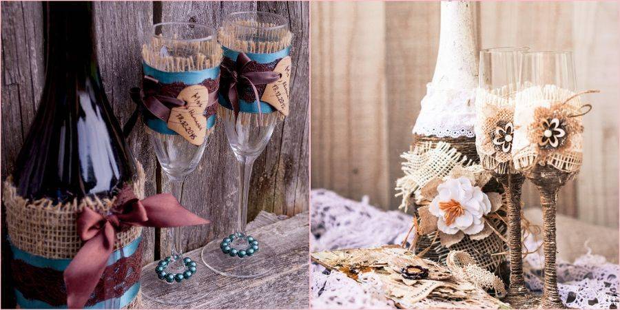 Такие аксессуары можно декорировать толстой веревкой, кружевом, мешковиной и вырезанными деревянными фигурками.