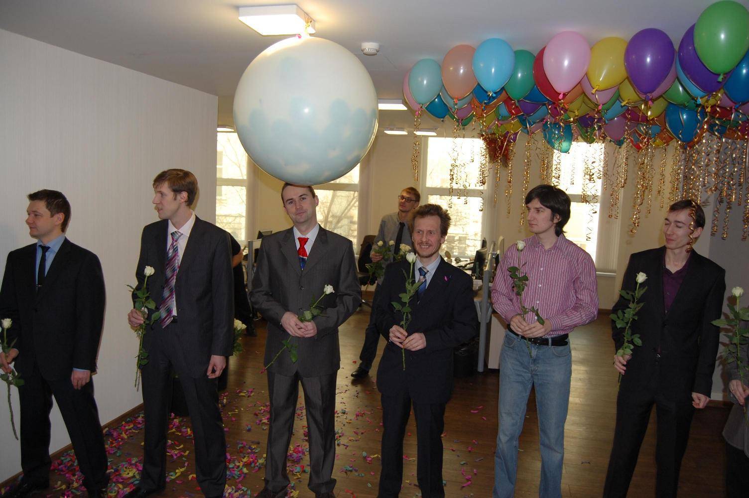 Если коллектив женский, не стоит расстраиваться. В таком случае составлением праздничной программы придется заниматься самим дамам. Лучше всего выбрать ведущего и ведущую.