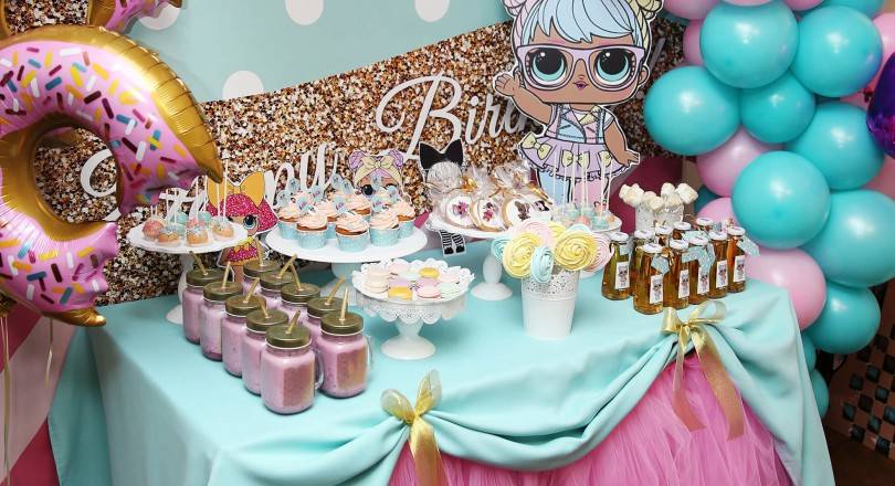 Если же стол большой, не стоит его заваливать горой выпечки и кучами конфет, привнося хаос в задумку. Используйте пространство с умом: на часть стола выложите десерты, на другую — поставьте фотографии именинника, положите гостевую книгу или книгу с открытками, загадками. Пусть гости (зачастую маленькие) рассматривают картинки, фото и параллельно развлекаются.