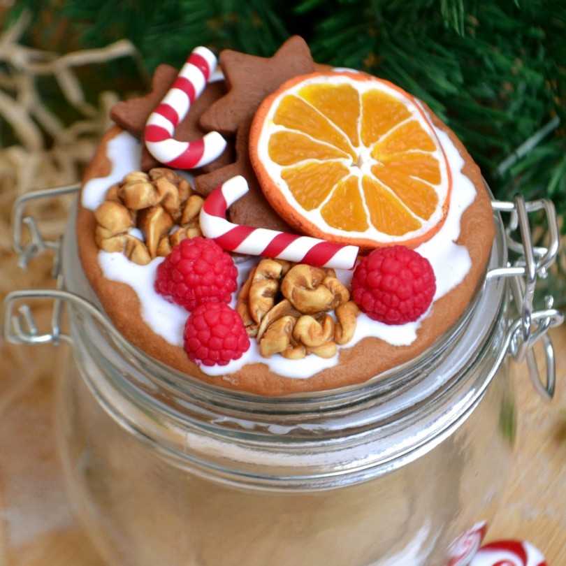 - Набор для горячего шоколада – наполните стеклянную банку порошком какао. Сверху украсьте дольками шоколада или маршмеллоу. Украсьте леденцами.