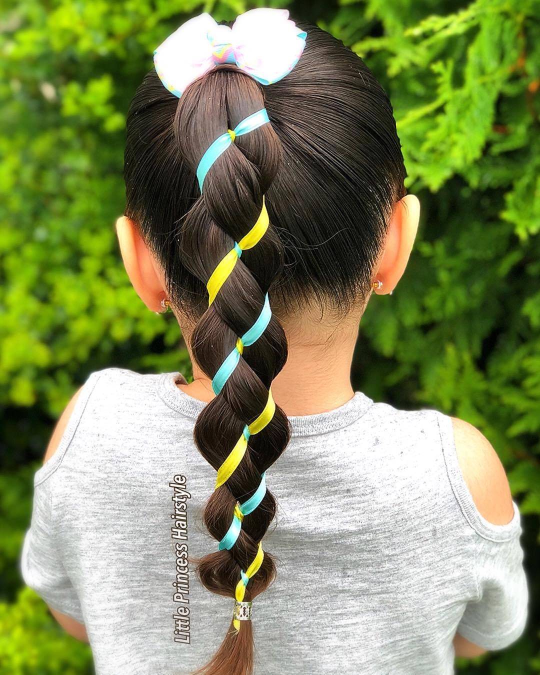 Модные причёски отличаются оригинальным плетением. К примеру, актуальны ажурные косички, которые заплетены по бокам в два рогалика и украшенные бантиками. Необычно выглядит причёска с лентами, состоящая из двух кос, соединённых в одну. На длинных волосах отлично смотрятся косы по всей голове.