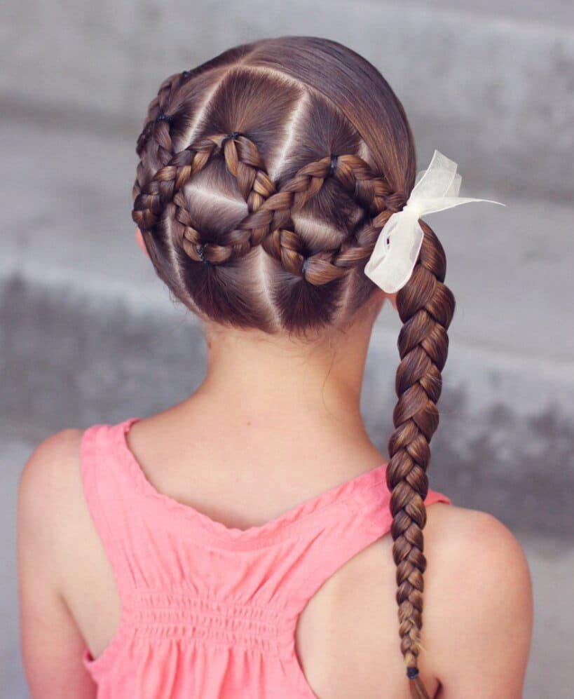 Это, пожалуй, самая трудоемкая прическа из всех представленных здесь. Она больше подходит именно для праздника, однако как только вы ее правильно сделаете, ваш ребенок однозначно скажет вам спасибо!