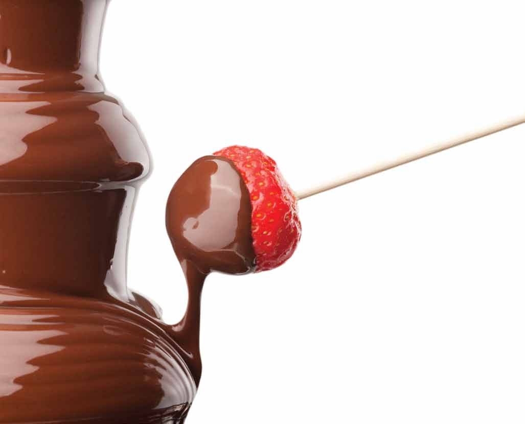 «Не забывайте цветы и фрукты как великолепный вариант украшения фонтана, – пишет sarahs-sweet-fountains. – По вкусу струящийся шоколад отлично гармонирует с зефиром и с клубникой. Иногда разумно установить две машинки. Одну с темным, а другую – с белым шоколадом».