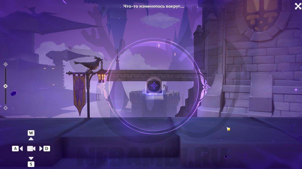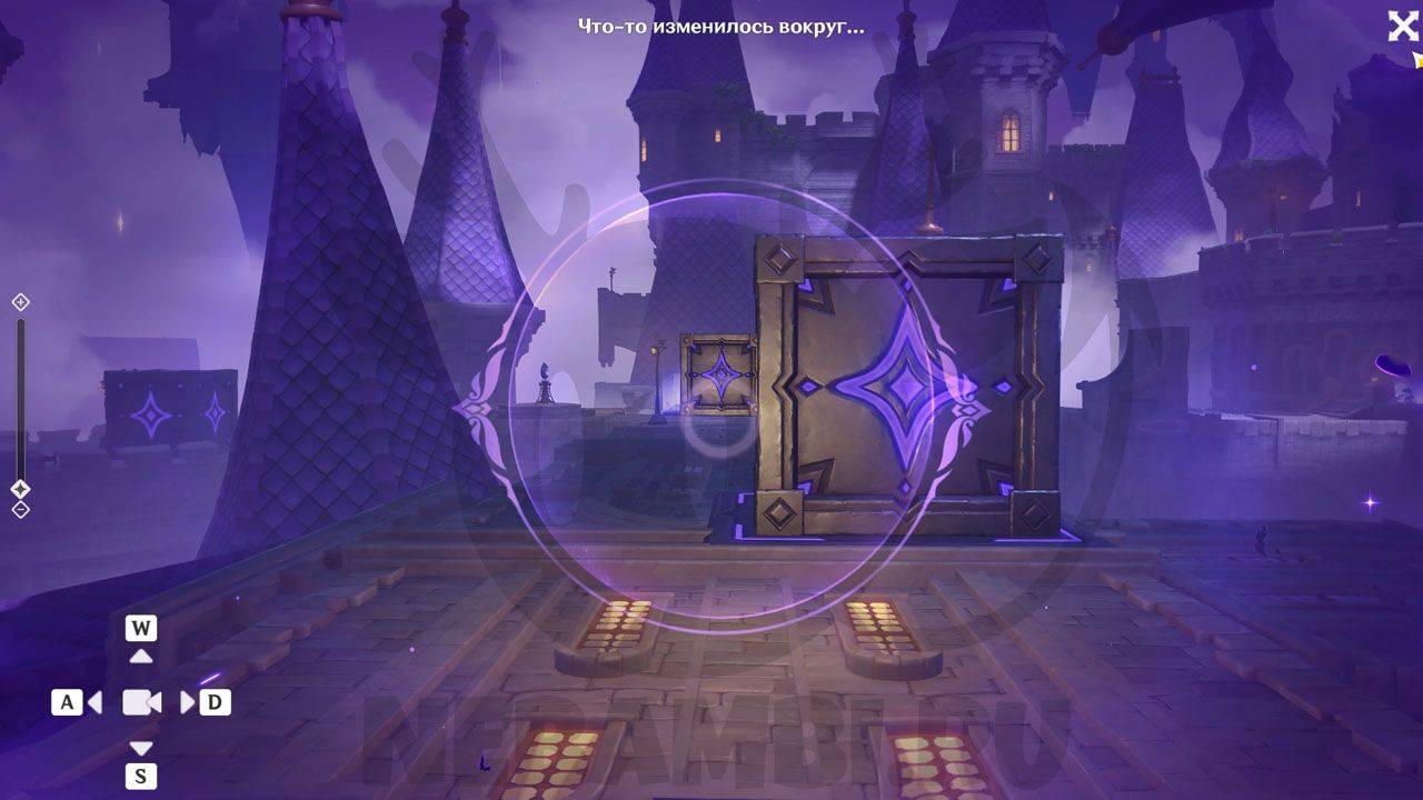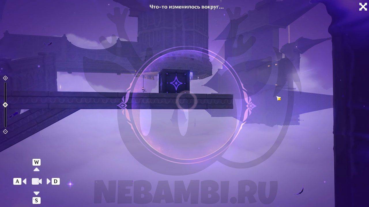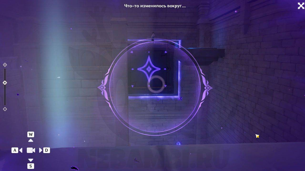 Находясь на изначальной версии острова, отправляйтесь в его западную часть. Там возле маленького водоема вы увидите несколько монументов. Активируйте их в следующей последовательности: Крио, Анемо, Пиро и Гидро. Перед этим убедитесь, что над столбами не светятся звездочки (это значит, что они уже активированы, поэтому вначале их необходимо вырубить). В конце звездочка должна гореть только над Гидро столпом.