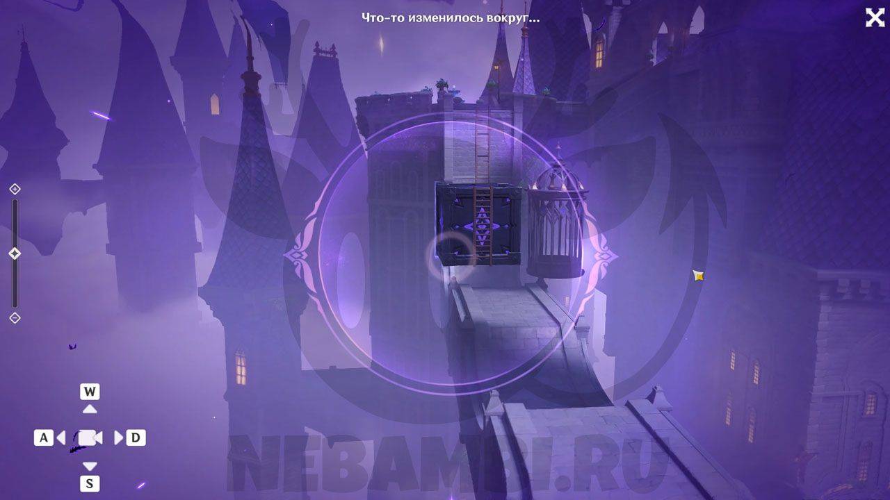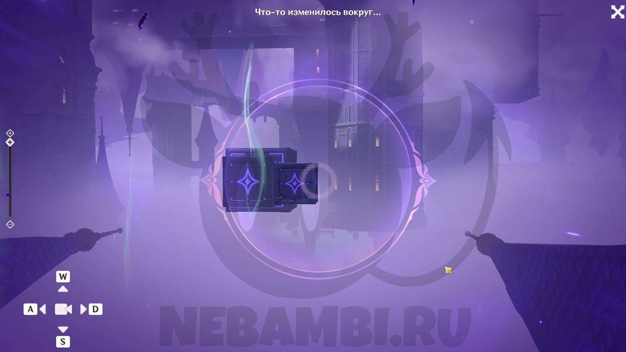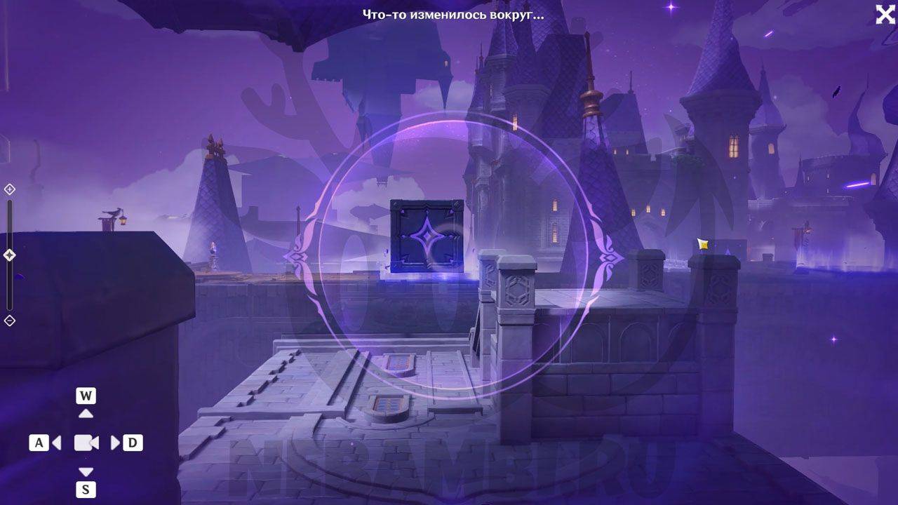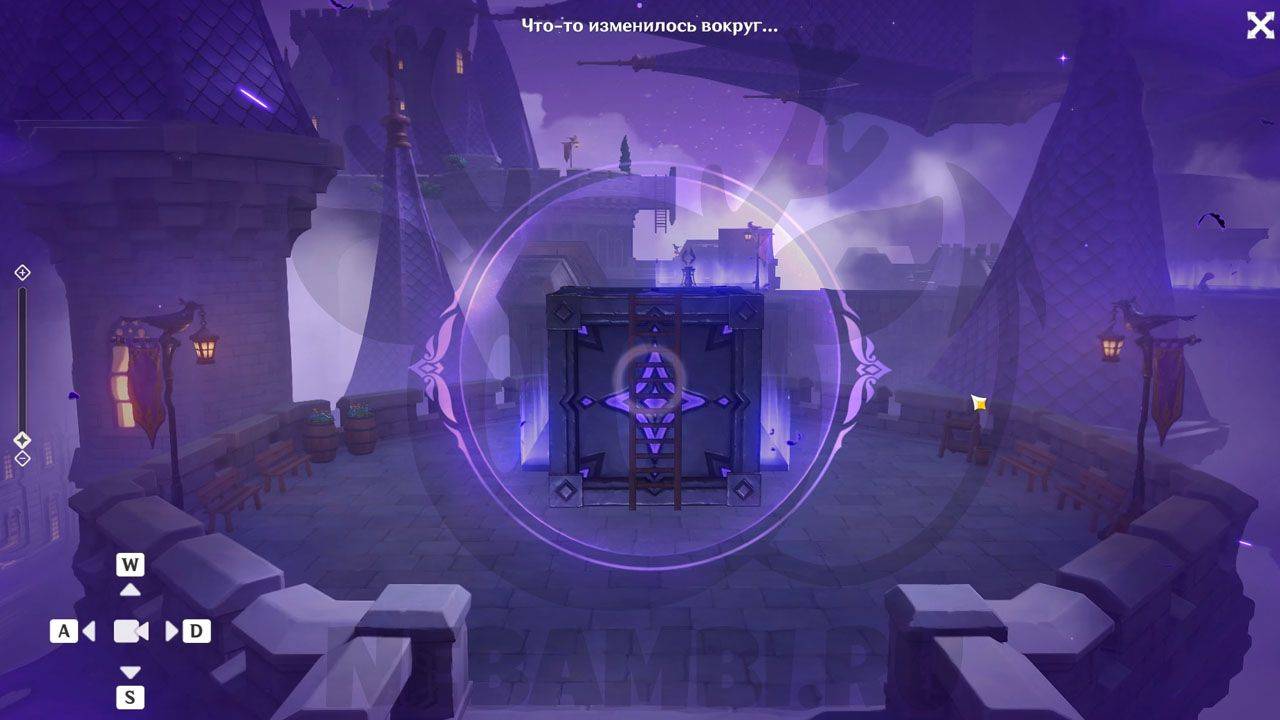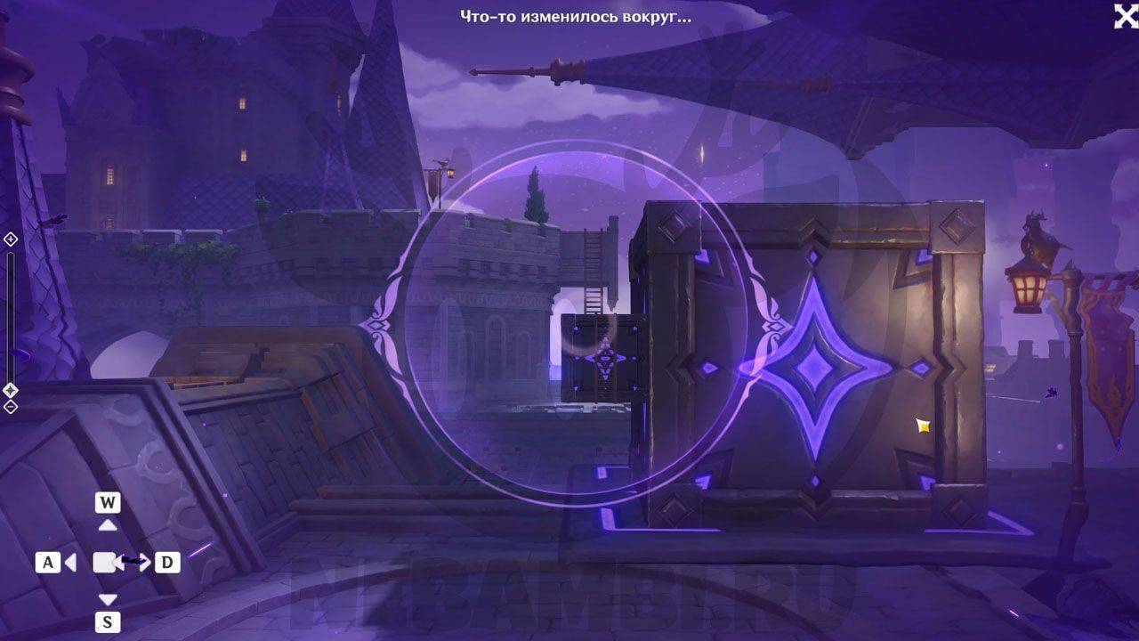 Находясь на изначальной версии острова, отправляйтесь в его западную часть. Там возле маленького водоема вы увидите несколько монументов. Активируйте их в следующей последовательности: Крио, Анемо, Пиро и Гидро. Перед этим убедитесь, что над столбами не светятся звездочки (это значит, что они уже активированы, поэтому вначале их необходимо вырубить). В конце звездочка должна гореть только над Гидро столпом.