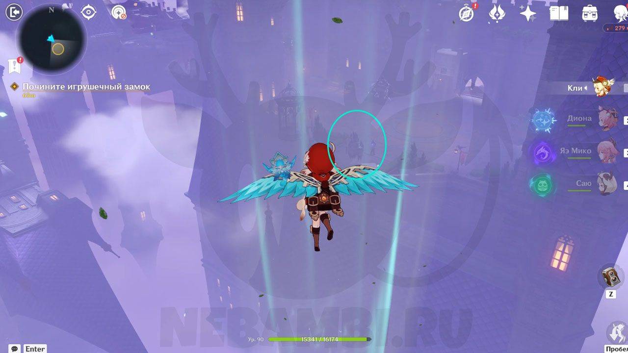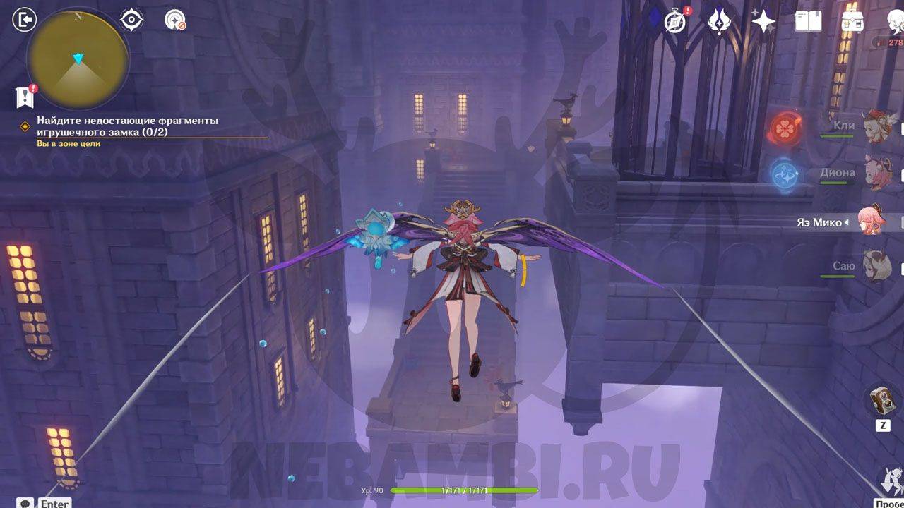 Теперь прыгаем в появившийся поток ветра и летим до игрушечного замка.