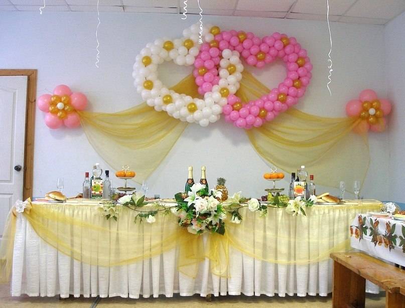 Для свадьбы лучше подбирать нейтральные залы со стенами, выкрашенными в светлый цвет, и с достаточно стандартным интерьером. Существует масса вариантов, как украсить президиум на свадьбу своими руками – как обычных, так и весьма оригинальных.