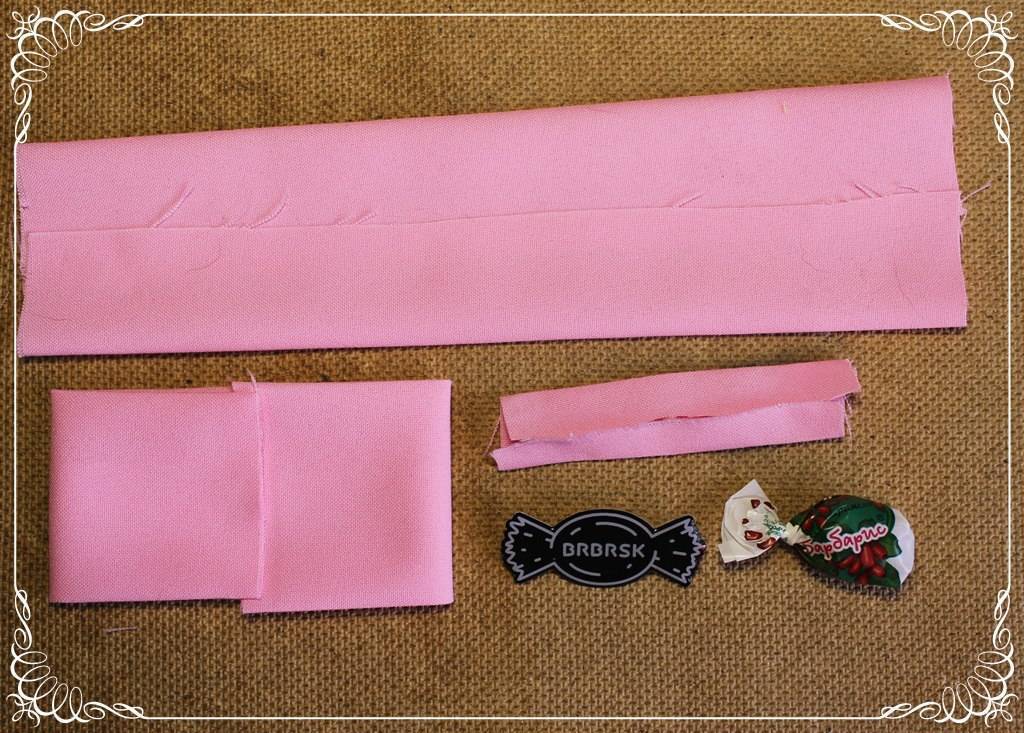 - Из нее же вырезать небольшой кусочек для перемычки банта.