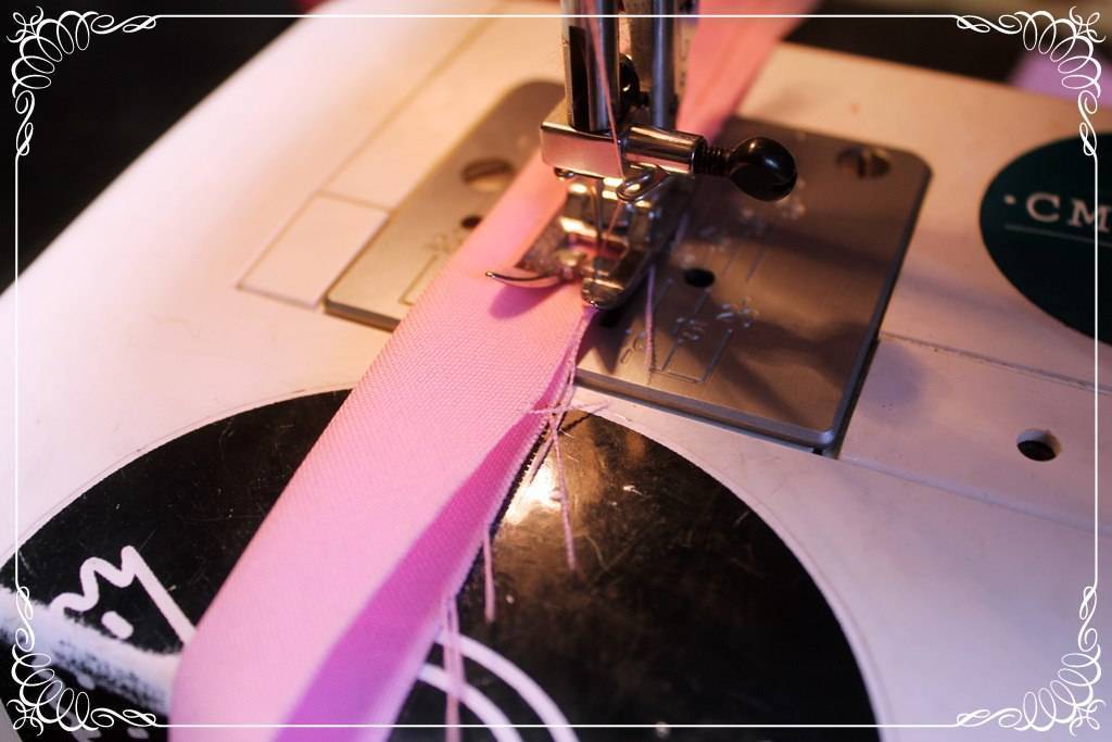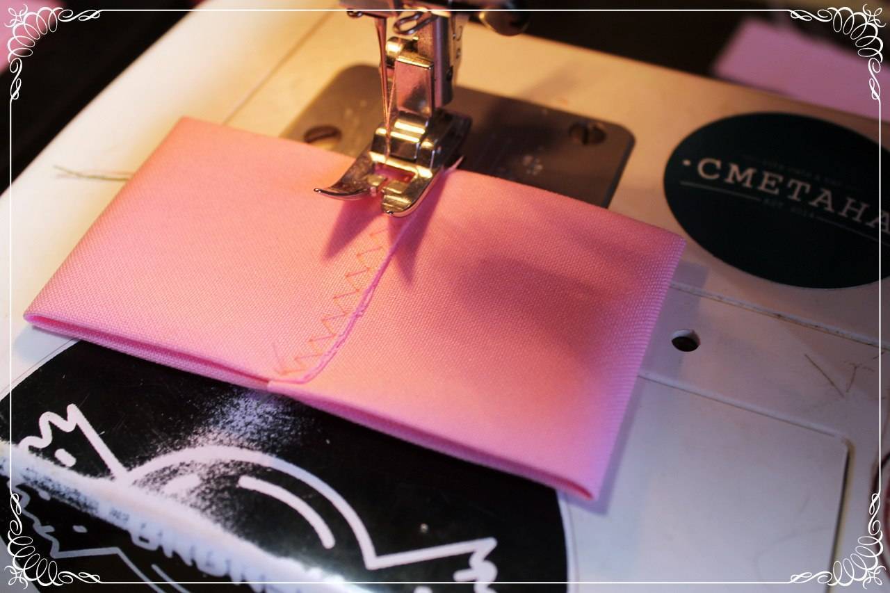 - Проводят строчку по продольной стороне бабочки, а внешнюю часть нужно подвернуть и подшить.