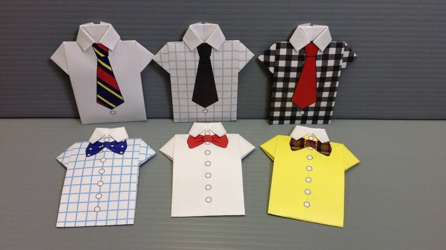Очень хорошим заменителем подарка-галстука станет оригинальная открытка в виде рубашечки с галстуком, которая также очень просто изготавливается.