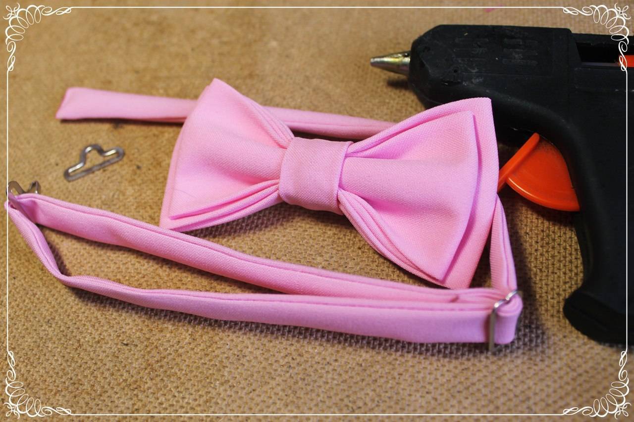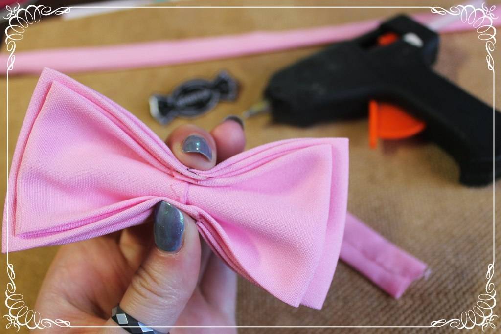 - Готовые детали бабочки достаточно приклеить к резинке и обмотать перемычкой.