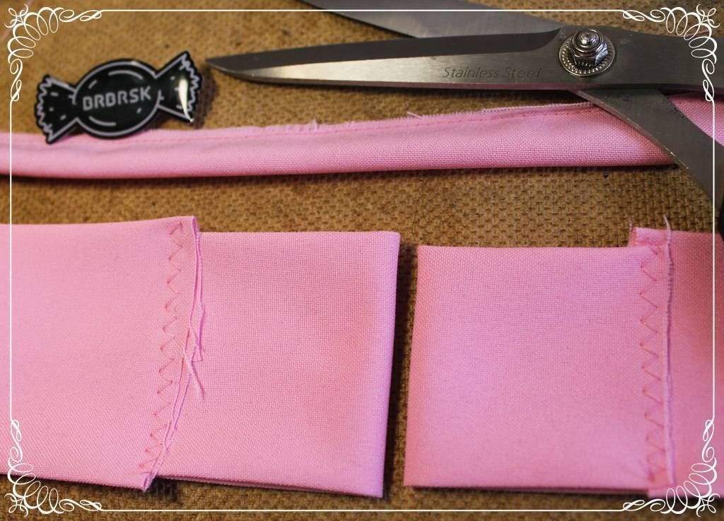 - Отрезаются излишки ткани, а срезы и припуски нужно стачать.