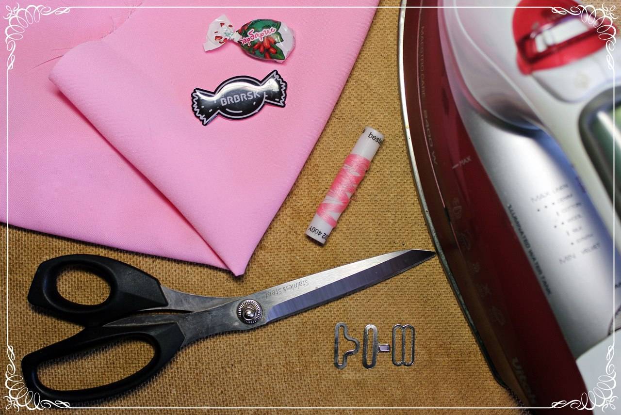 - Установить крепления (скажу честно — тесьму не делала, отцепила лямку от бюстгалтера, держится отлично!).