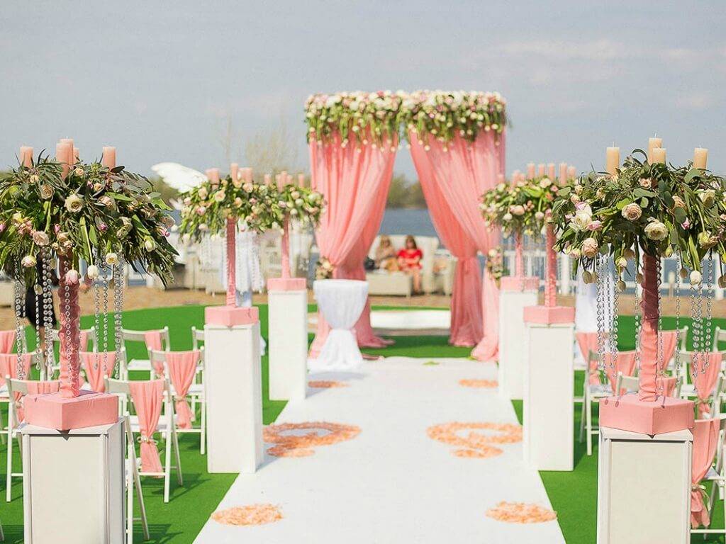 Нужно учитывать погодные условия. На случай ненастья нужно подготовить запасной план, чтобы церемония не сорвалась. Хорошо, если рядом с открытой площадкой будет помещение, шатер или навес. Мероприятие лучше всего в этом случае проводить на территории ресторана, отеля.