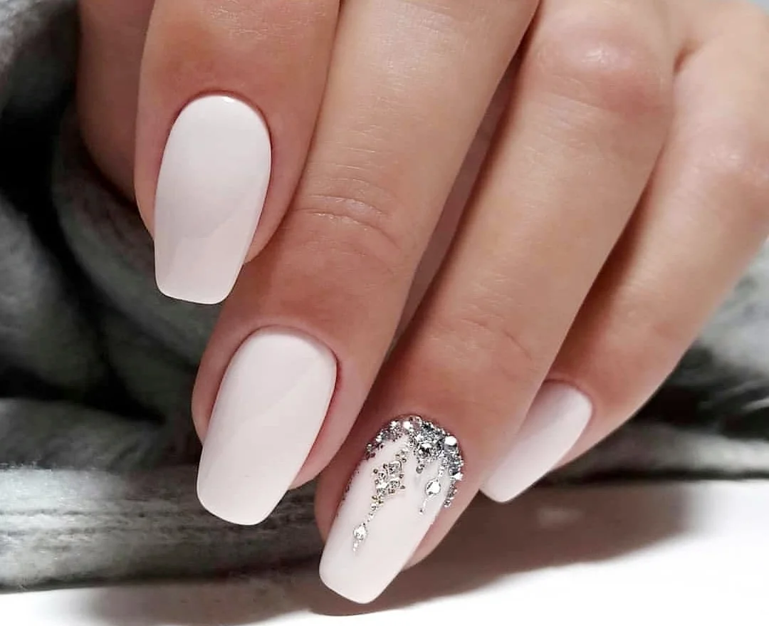 Маникюр молочного цвета шикарно смотрится с любыми украшениями.