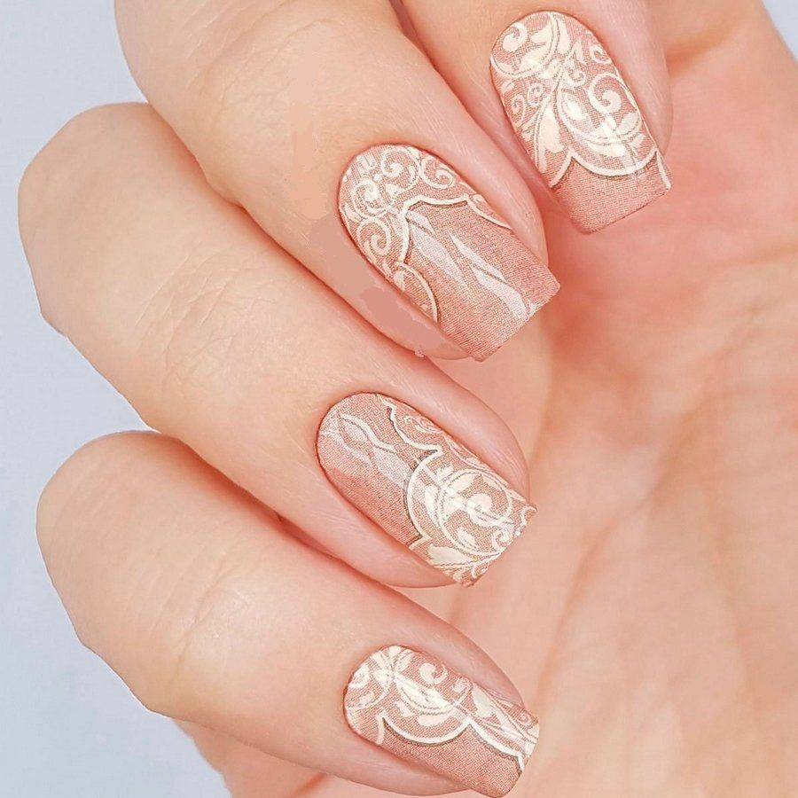 Пожалуй, самый нежный вариант оформления ваших ноготков. Полупрозрачная кружевная вуаль великолепно выглядит на романтичном нюдовом фоне. Единственная проблема состоит в том, что подобный декор не уместен на очень короткие ногти.