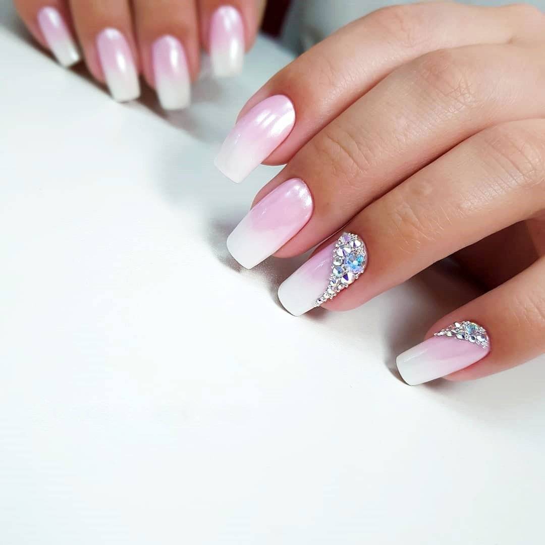 Очень нежно и воздушно смотрится розовый маникюр с френчем или стразами.