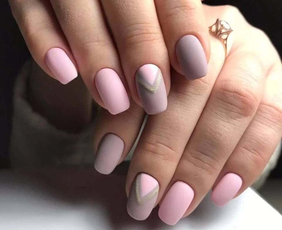 Этот маникюр выглядит стильно и сексуально. Если вы одна из тех невест, которые любят выставлять напоказ и удивлять своим внешним видом, тогда вам нужно сделать этот дизайн маникюра. Базовый цвет – серый с матовым верхним слоем. Затем добавьте немного призматического, серебряного блеска на безыменный палец.