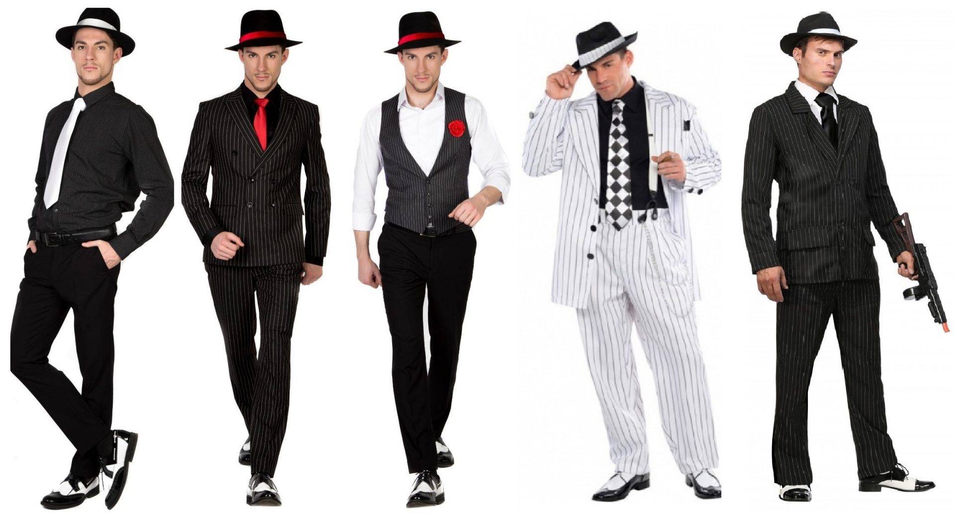 - мужские костюмы в полоску или однотонные, подтяжки, бабочка
