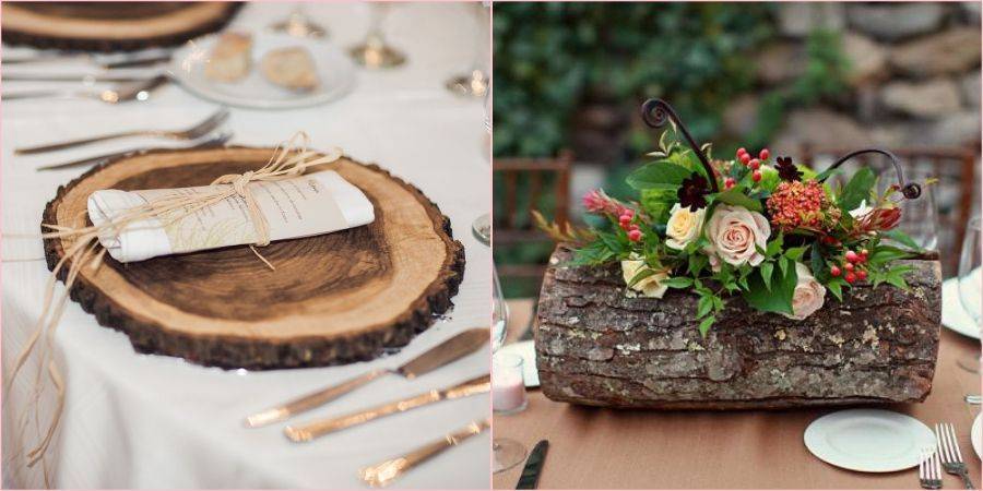 Данный вариант самый актуальный среди молодоженов и уместен для любого времени года. Хорошо, если ресторан уже будет оформлен в похожем стиле, в нем может быть деревянная мебель и камин. Если же нет, то это не беда, стоит лишь тщательно продумать украшение зала под выбранную Вами тематику.
