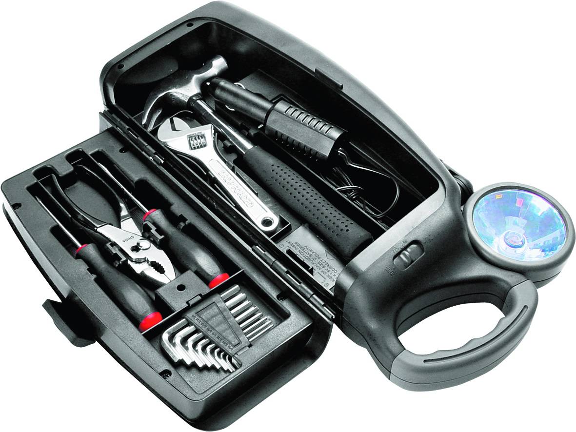 - набор инструментов: плоскогубцы, отвёртки, гаечные ключи, молоток и многое другое;