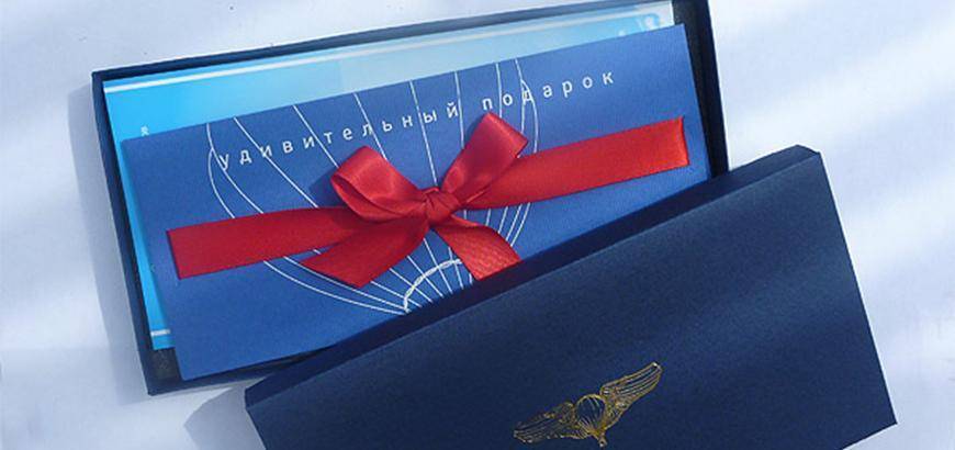 - именной авиабилет с шуточной фразой «Куда душа пожелает».