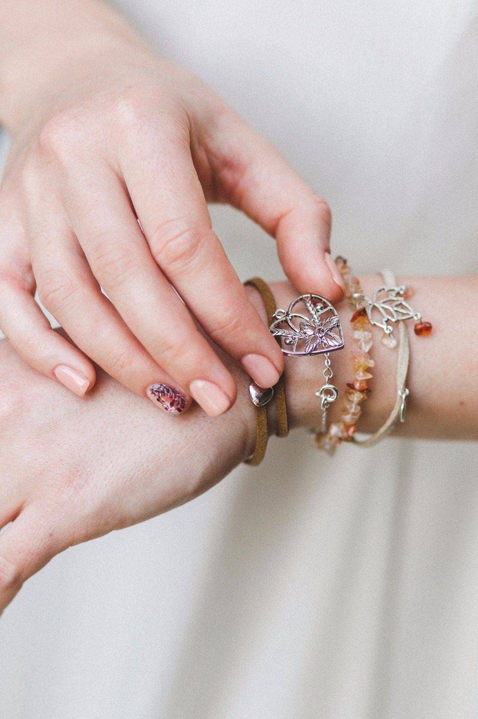 С нарядами и украшениями нам помогала стилист Светлана Грошева — платье и костюм были сшиты по ее эскизам и под ее руководством. Я была влюблена в свое платье — это сплошная нежность, не перегруженная деталями, сетками и стразами. Браслеты, серьги и подвеска — тоже Светины творения.