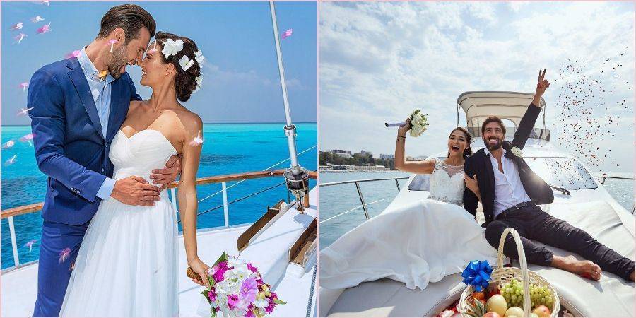 Если Вам двоим близка водная стихия, то эта идея как раз для Вас. Арендуйте судно и устройте себе романтическую прогулку. Смелые молодожены могут попрыгать с яхты прямо в воду.