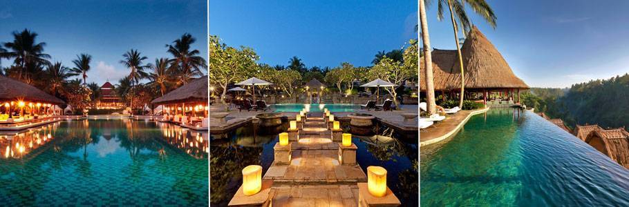 Мечтаете об экзотической свадебной церемонии? Почему бы не провести ее на слонах? В городке Убуде находится парк слонов, которые радостно поприветствуют молодоженов. К ним присоединятся милые обезьянки, которых полно в окружающих лесах. Убуд – средоточие красивых пейзажей, поэтому свадьба здесь получится очень близкой к природе. Будущим супругам очень полезно почувствовать всю мощь окружающих гор, чтобы сродниться и стать ближе друг к другу. Убуд не имеет пляжей, однако церемонии на воде проводят. Для этого используют бассейны, покрытые сверху прочным стеклом.