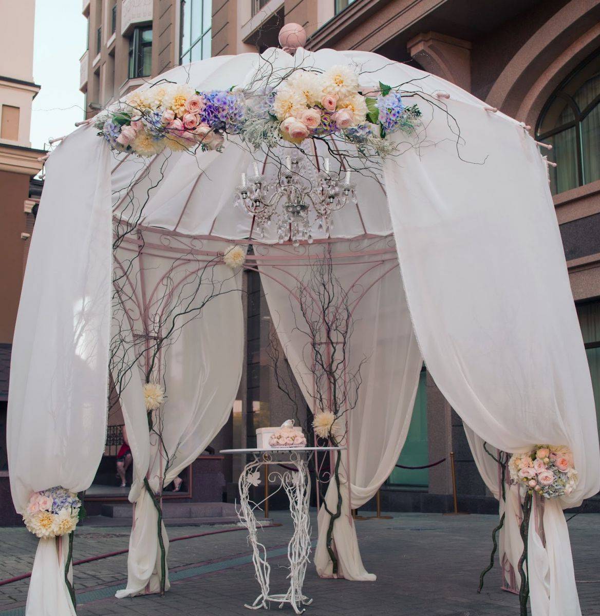 Однако перед тем, как сделать шатер для свадьбы своими руками, учтите, что невозможно будет построить самостоятельно переносную конструкцию, если вы не владеете специальными навыками. Во-первых, нет никакой гарантии, что она удержится после установки. Во-вторых, этот процесс трудоёмкий и долгий.