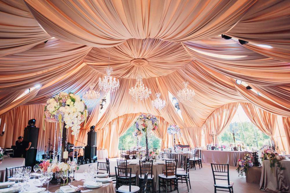 А мы предлагаем вам взглянуть на несколько прекрасных примеров проведения свадебной вечеринки в шатре от специалистов каталога The-Wedding.ru.