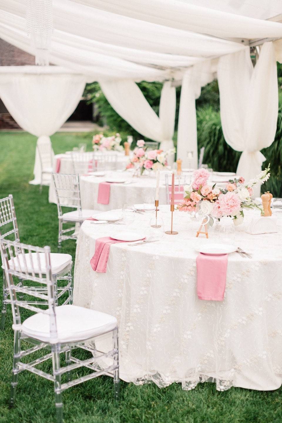Драпировка воздушной и нежной вуалью в сочетании с ярким и плотным сатином с легкостью преобразит летний шатер, и создаст атмосферу дорогого шикарного ресторана.