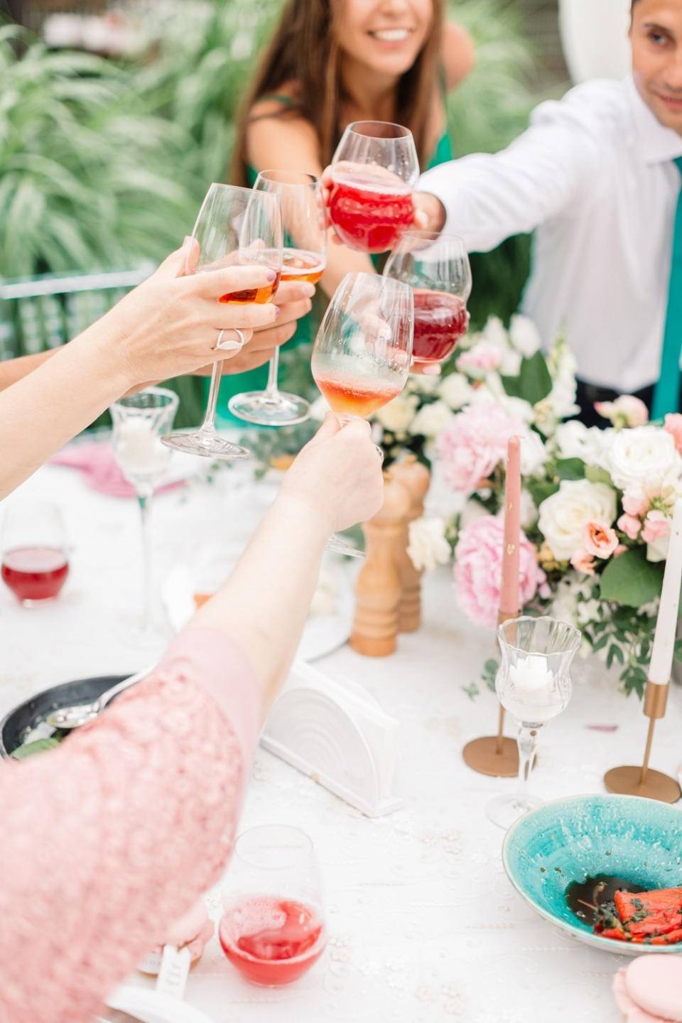 Самым неожиданным и приятным сюрпризом сразу после церемонии стал подарок от наших подруг, которые исполнили песню собственного сочинения. Уже когда все гости заняли свои места за столами, грянул гром и начался ливень. Дождь был приятный и летний. Многие выходили под ним погулять. Гостей в этот день ждало много сюрпризов: мастер-класс по ирландским танцам, выступление нашей музыкальной группы, сюрприз от Димы в виде «нашей» песни, которую он исполнил под гитару, веселые конкурсы, долгожданный танец и сказочный торт.