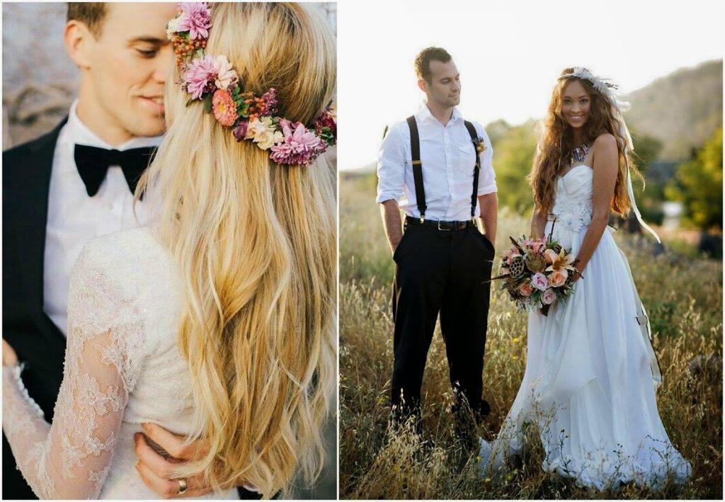 Прическа невесты лишена сложности, красивое плетение, украшенное цветами в волосах, несколько свободных прядей — классика эко-образа. Жених должен ощущать свободу, поэтому выбор костюма может быть как классическим, так и неформальным, в стиле casual. Главное, чтобы он гармонично дополнял всю эко-концепцию, то есть, никакой синтетики, роскоши и лоска.