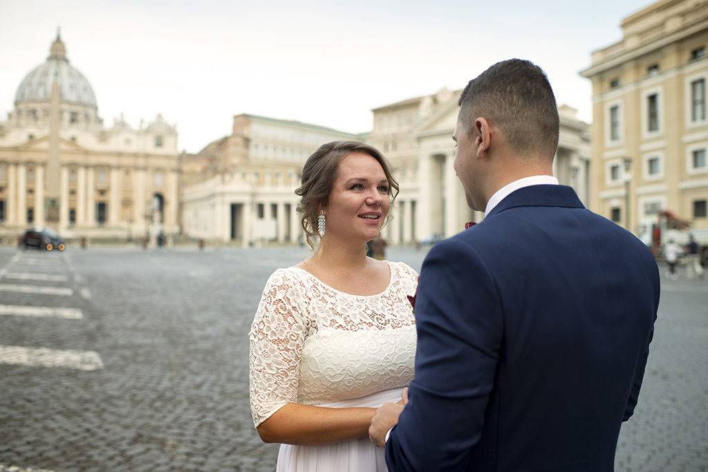 Это был очень эмоциональный и душевный день. Первая встреча жениха и невесты состоялась ни где-нибудь, а на самой площади Святого Петра. В объятьях христианской веры и колоннады Бернини. Волнительное ожидание, слезы счастья и любимое плечо рядом. Это любовь!..