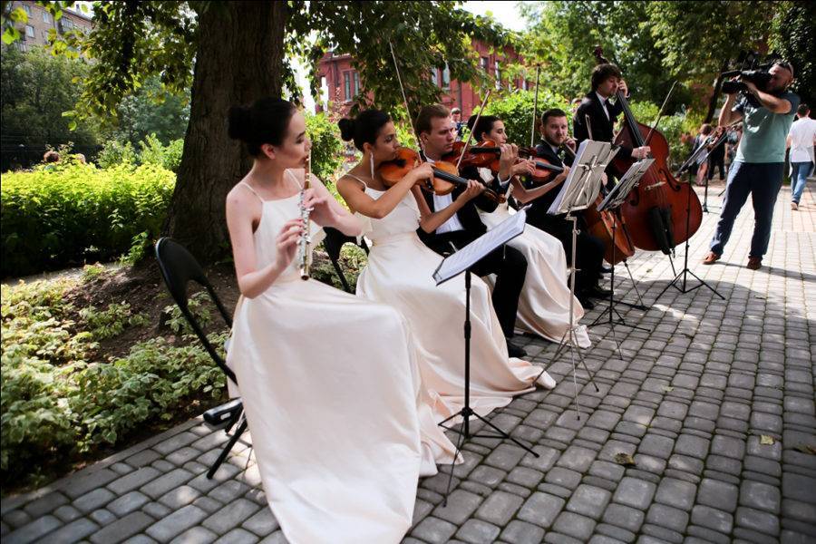 - Музыка. Часто приглашают оркестр, музыкантов или диджея. Не забудьте, выделить для них достаточно места.