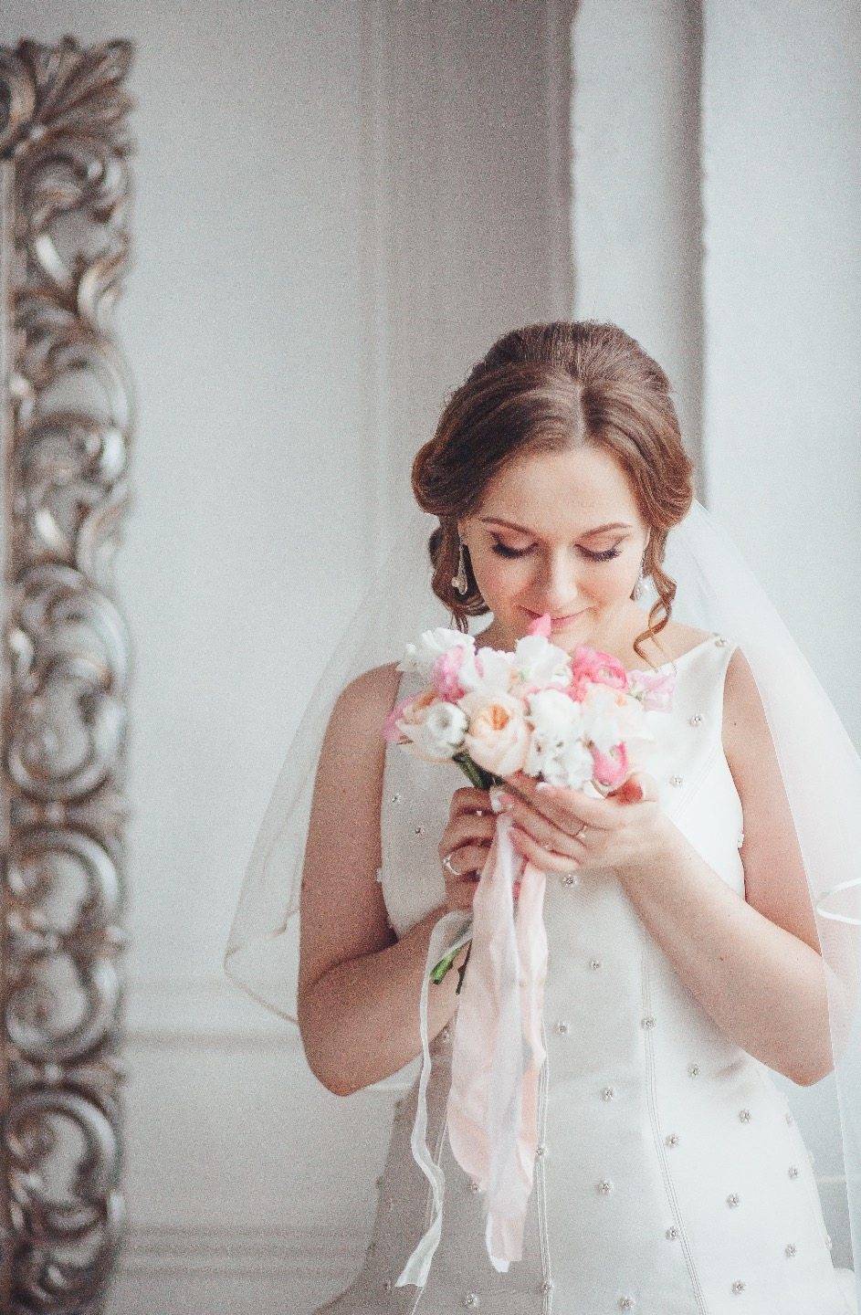В качестве темы для свадьбы мы выбрали сказки, исходя из формата предложения, в котором я оказалась настоящей принцессой на горошине, а также из нашей любви к мультикам. Во флористике мы отдали предпочтение латирусу и моим любимым снежным цветам ранункулюсам, также в композициях красовались георгины, пионовидные розы. За основу в палитре взяли пудрово-розовый и зеленый цвета.