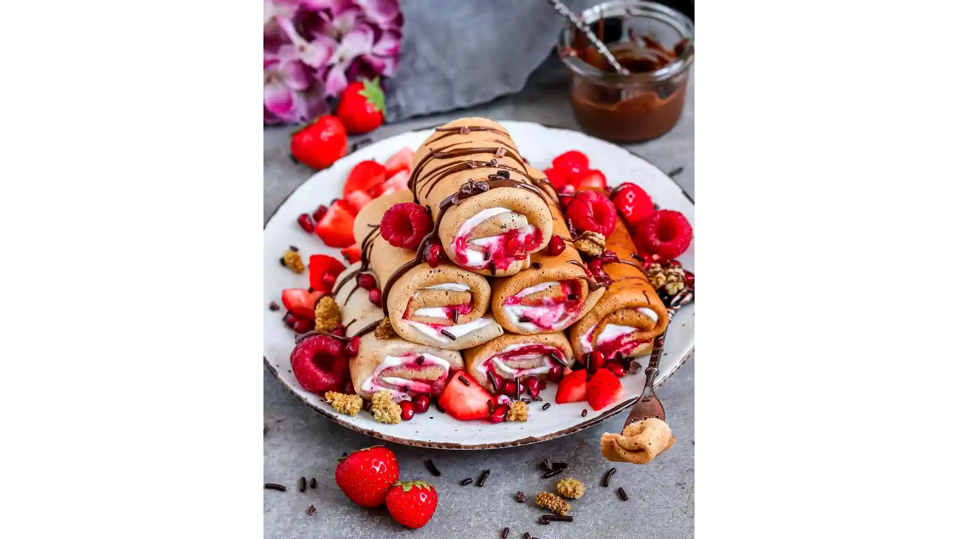 - Ягоды: клубника, крупная вишня и черешня, лесные ягоды, такие как ежевика и малина, цельные крупные виноградины или целые гроздья винограда.