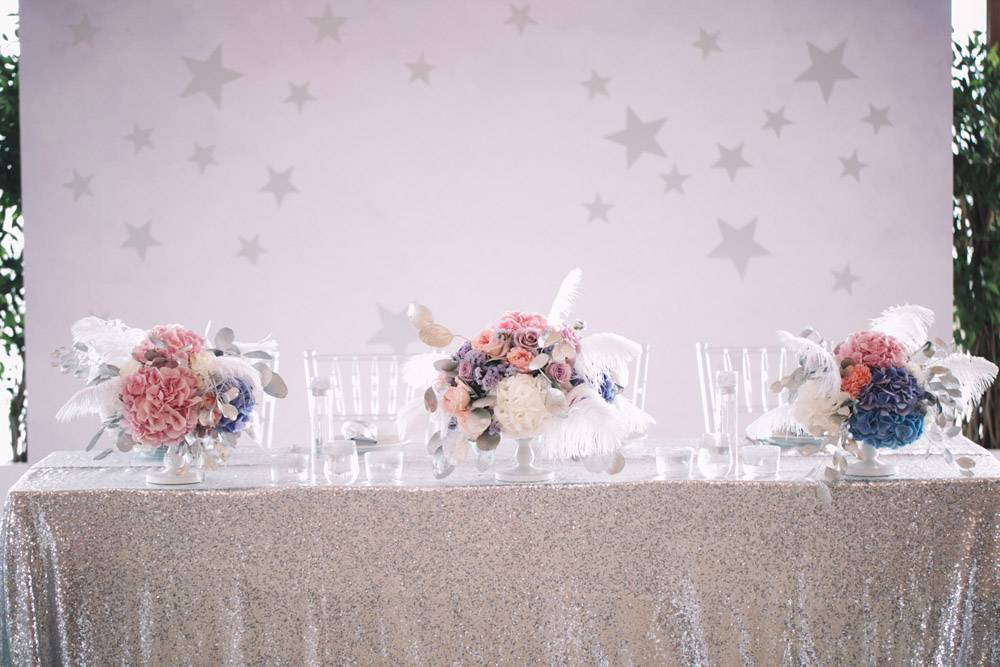 Стол молодоженов (президиум) – это самый главный стол на вашем празднике, именно к нему будет приковано все внимание в течение вечера. Поэтому и цветов на нем должно быть больше!