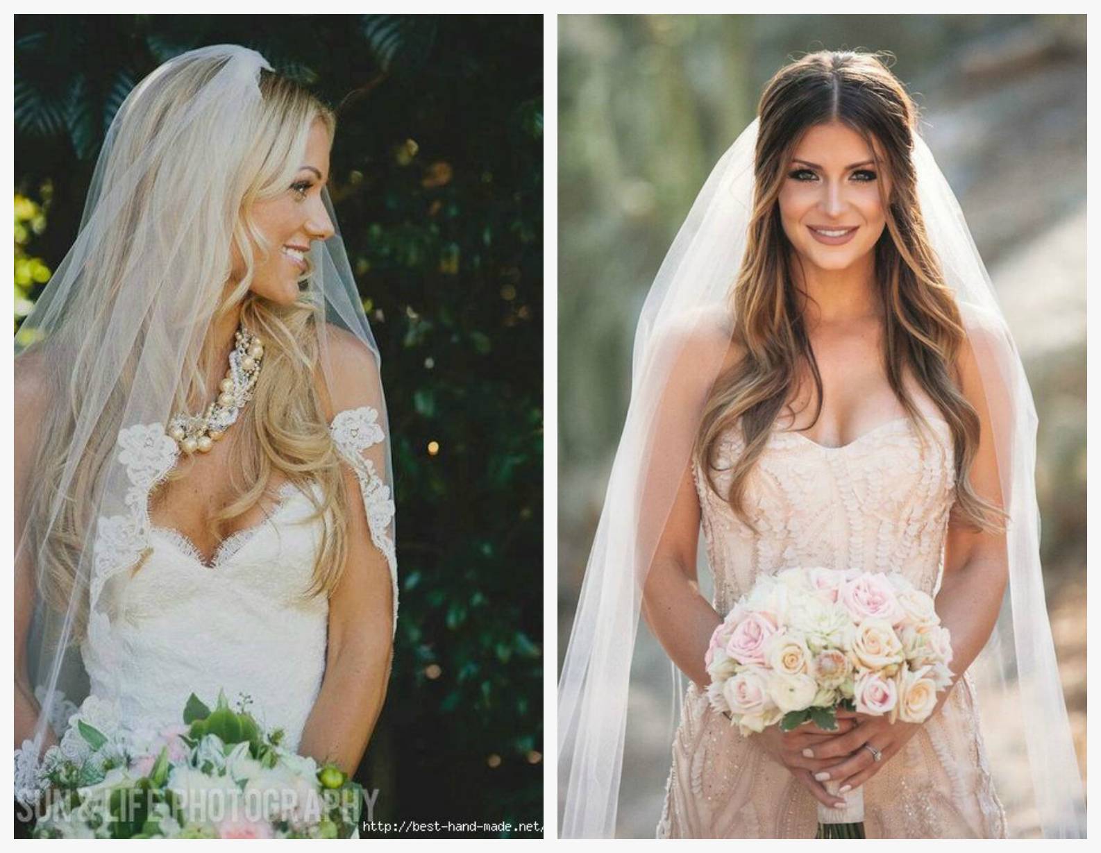 Красавицам с очень длинными волосами или же волосами средней длины можно сделать массу самых необычных причесок. Сегодня особенно актуальны прически в форме ракушки, а также объемные пучки. Такие варианты лучше всего выбирать под фату небольшого размера.